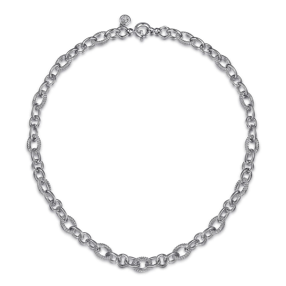 Sterling Silver Bujukan and White Sapphire Link Chain Necklace
