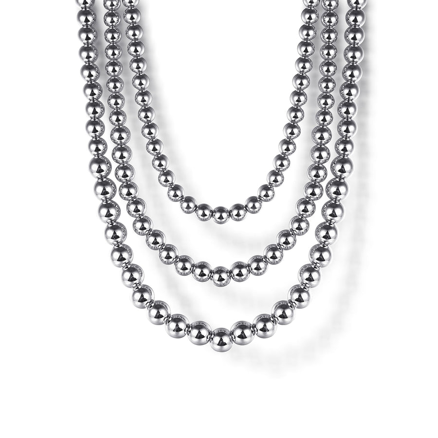 Sterling Silver Bujukan Beads Three Layered Necklace