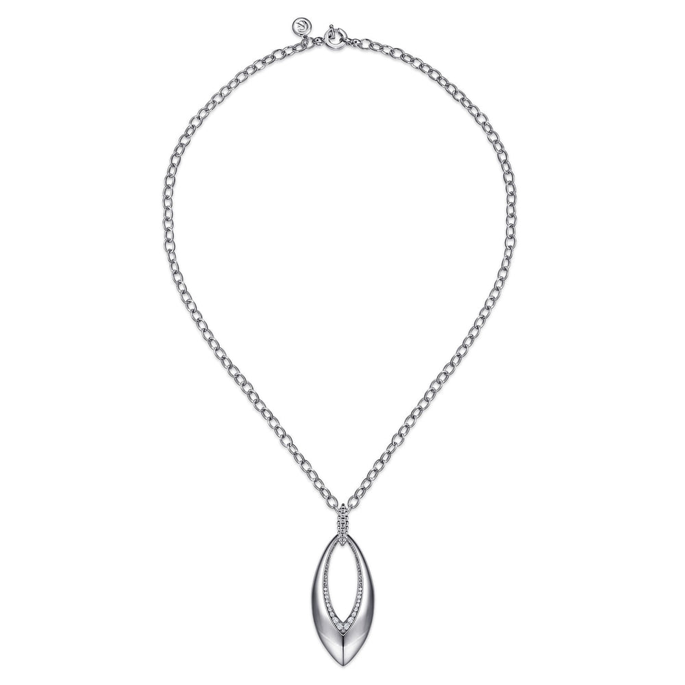 Sterling Silver Bujukan and White Sapphire Marquise Pendant Necklace