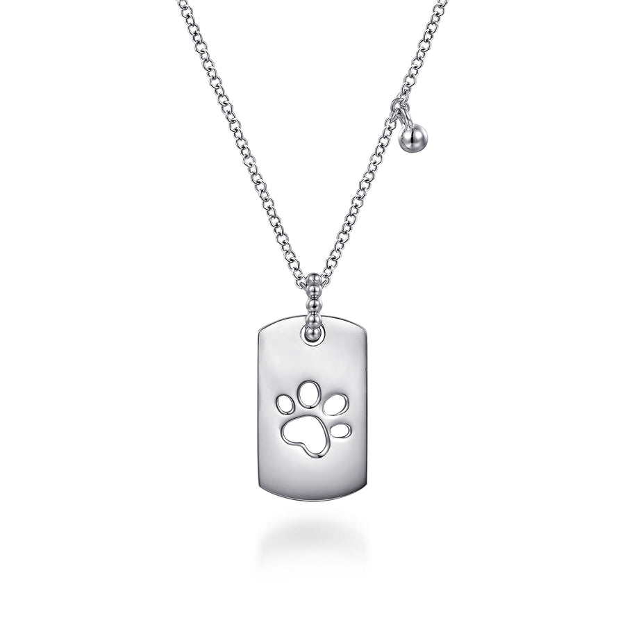 Sterling Silver Bujukan Dog Tag Paw Print Pendant Necklace