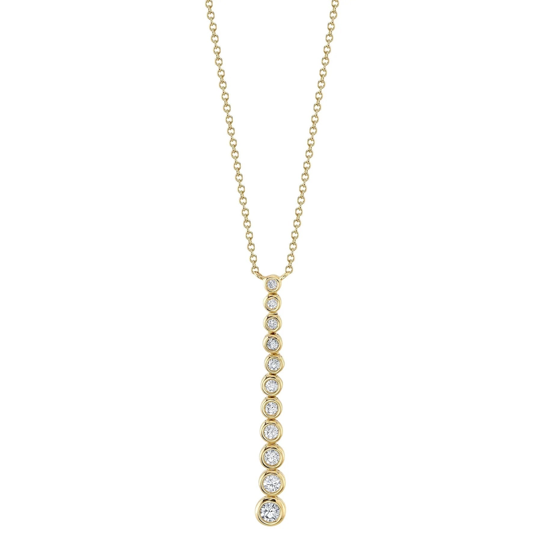 14K Yellow Gold 0.37cttw Diamond Journey Bezel Set Necklace attached to a 17" adjustable chain with lobster claw clasp.