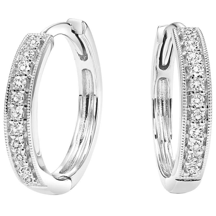 Bead Set Diamond Huggie Earrings 10K White Gold