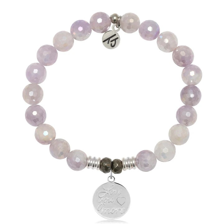 Mauve Jade Gemstone Bracelet with Love You More Sterling Silver Charm