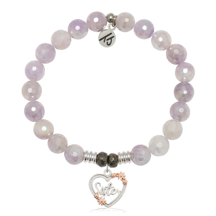 Mauve Jade Gemstone Bracelet with Sister Sterling Silver Charm