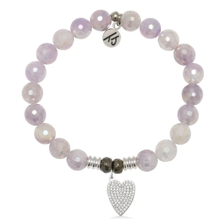 Mauve Jade Stone Bracelet with Always in my Heart Sterling Silver Charm