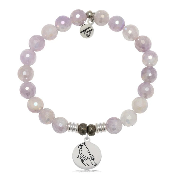 Mauve Jade Gemstone Bracelet with Cardinal Sterling Silver Charm