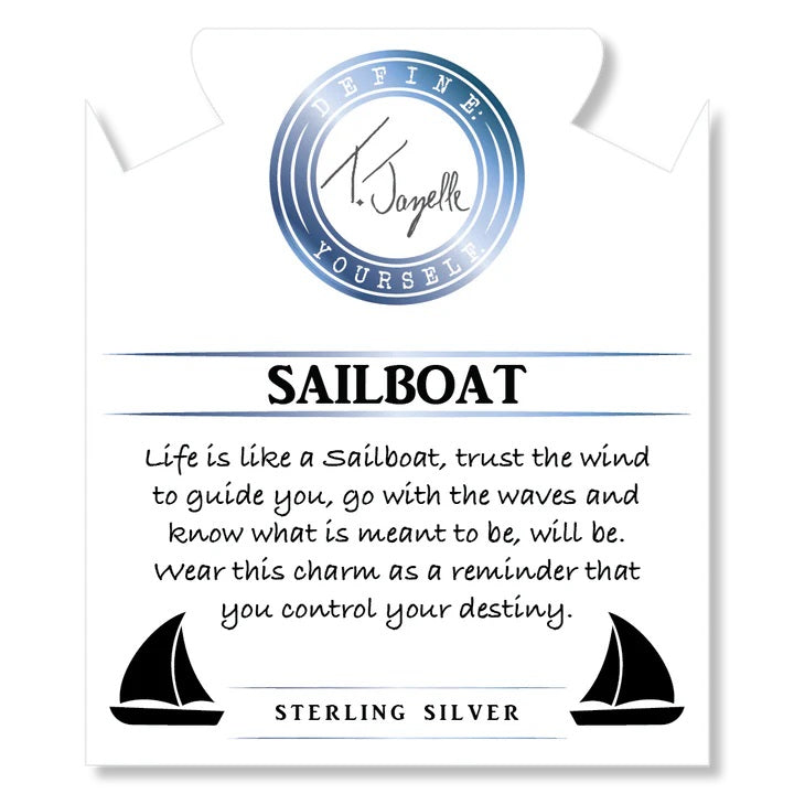 Robin Egg Agate Stone Bracelet with Sailboat Sterling Silver Charm