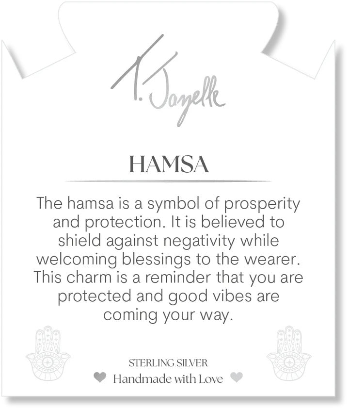 Snakeskin Jasper Gemstone Bracelet with Hamsa CZ Sterling Silver Charm