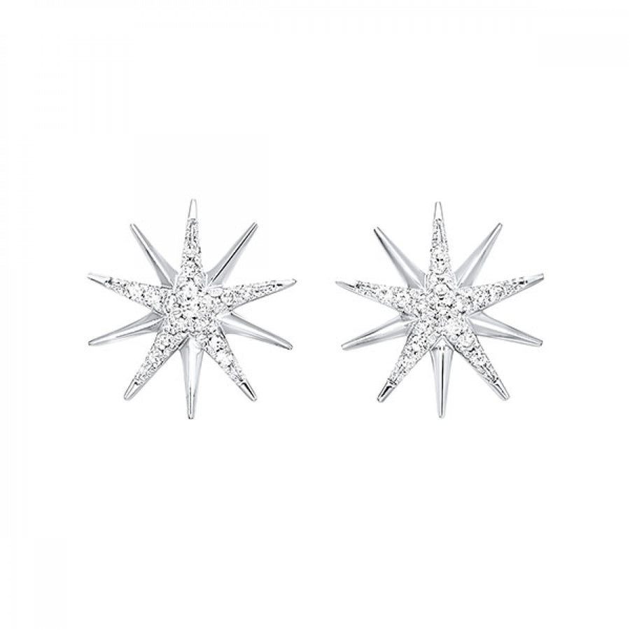 Sterling Silver 1/10cttw Diamond Starburst Stud Earrings