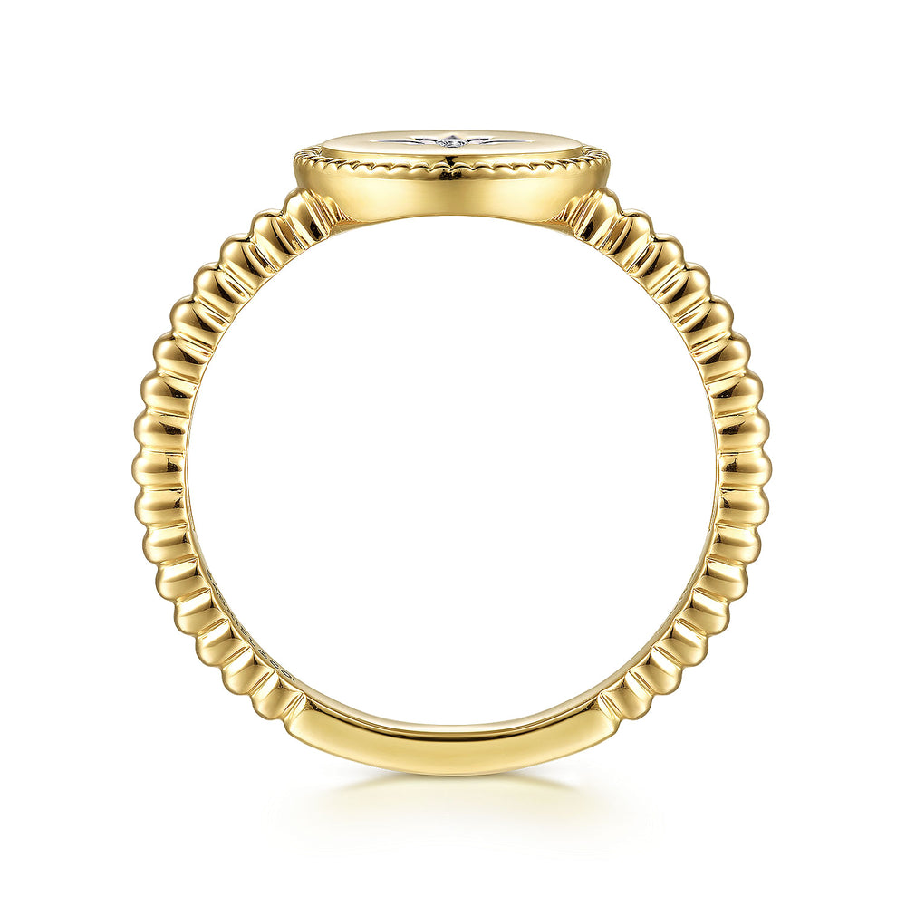 14K Yellow Gold Round 0.01cttw Diamond Star Bujukan Signet Ring
