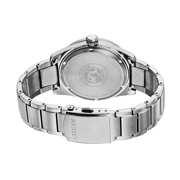 Citizen Brycen Eco-Drive Men's Calendrier Chronograph Watch. This Eco-Drive watch is powered by light, and features a 43mm silver tone stainless steel case and bracelet. Has a pine green dial and bezel, and includes 3-hands with date window. Comes with an anti-reflective mineral crystal.