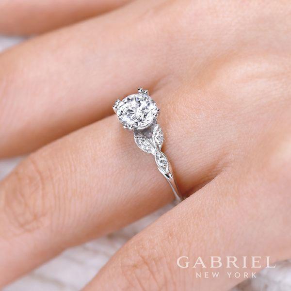 Dainty Floral Style Round Diamond Ring 14K White Gold 191A