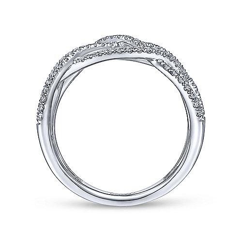 14K White Gold 1/2cttw Woven Multi-Strand Diamond Fashion Ring. This stylish diamond right hand ring features .51cttw of round diamonds with an average color grade of I and clarity grade of SI2. All diamonds are prong set in solid 14k white gold in a multi band design. Designed by Gabriel & Co.