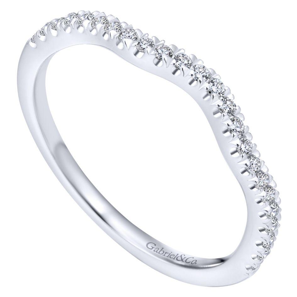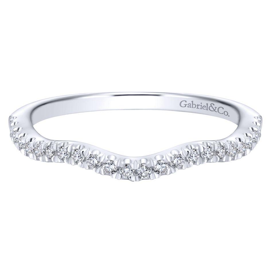 14K White Gold .16cttw Curved Pave Diamond Wedding Band. Designed by Gabriel & Co. #412B
