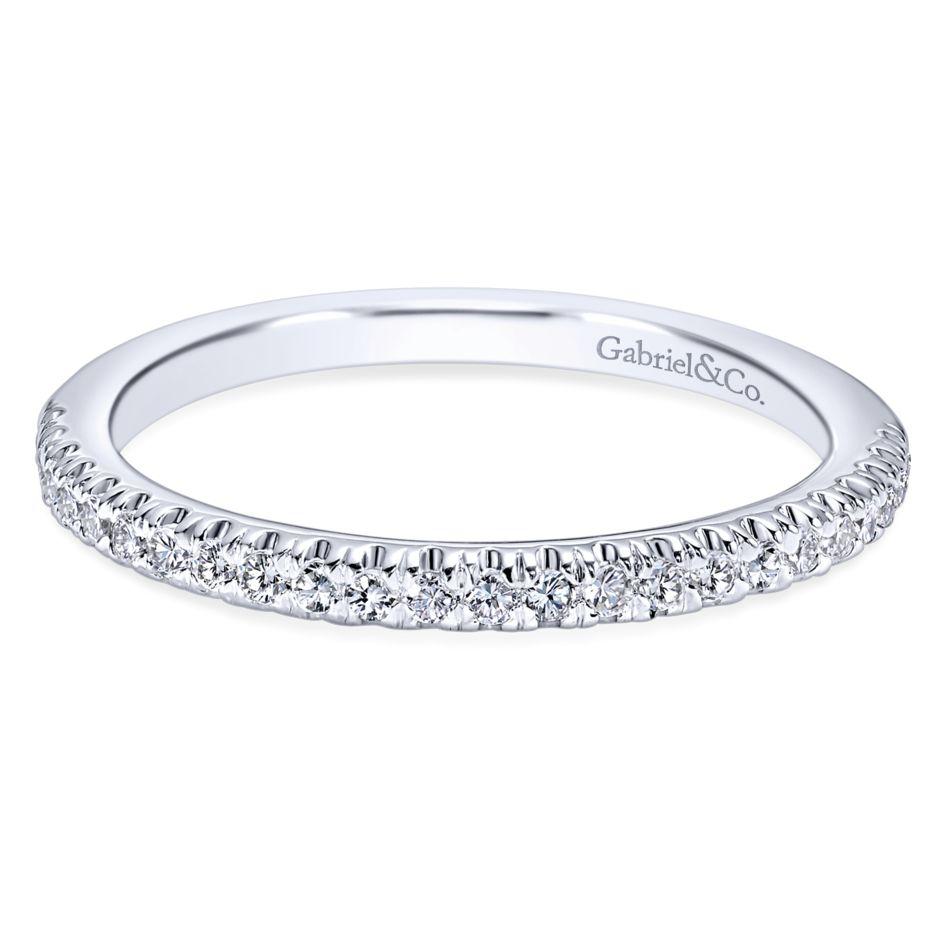 14K White Gold .19cttw Straight Pave Diamond Wedding Band. Designed by Gabriel & Co. #393B