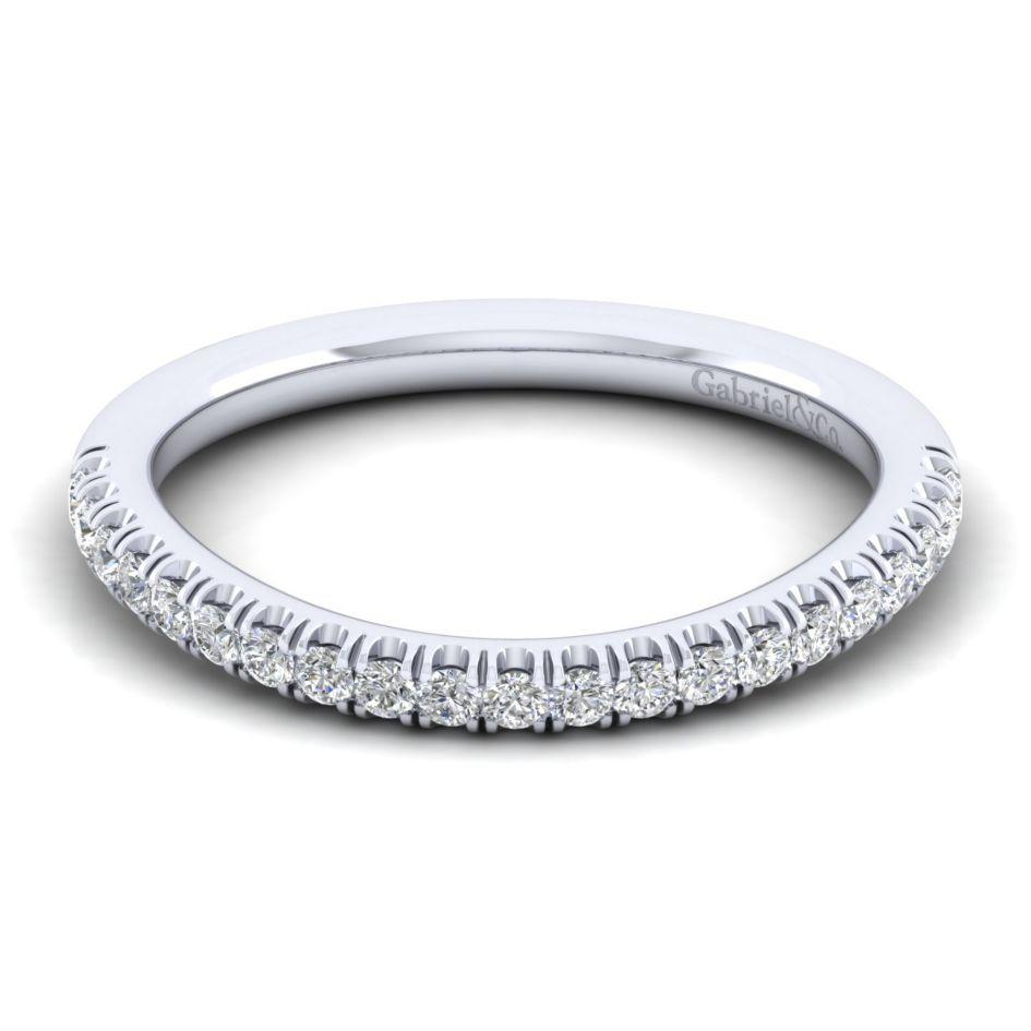 14K White Gold .24cttw Straight Pave Diamond Curved Wedding Band. Designed by Gabriel & Co. #426B