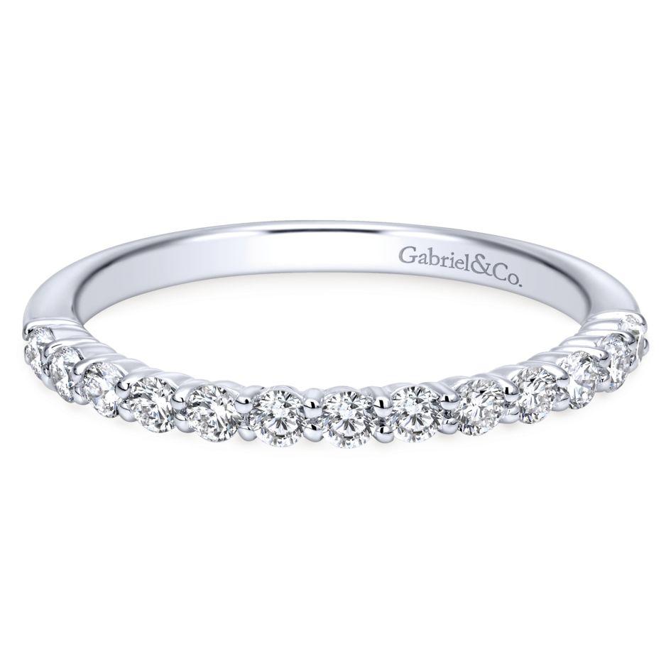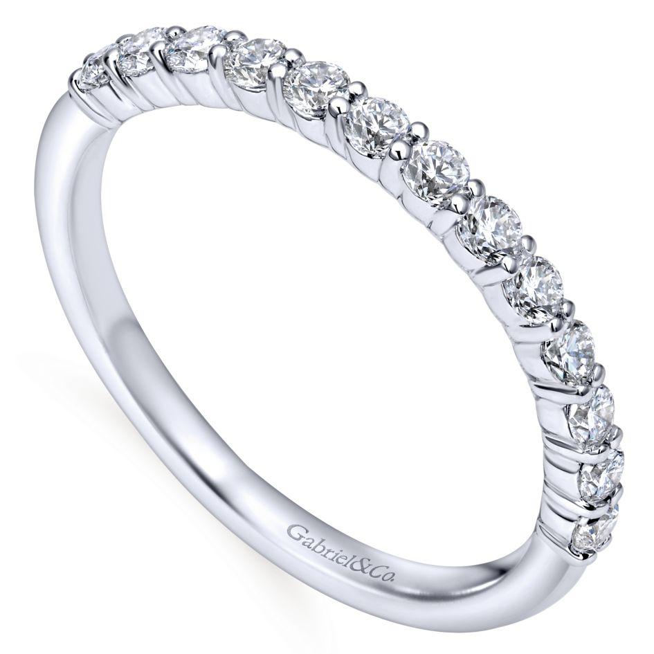 14K White Gold .38cttw Straight Prong Set Wedding Band. Designed by Gabriel & Co. #486B