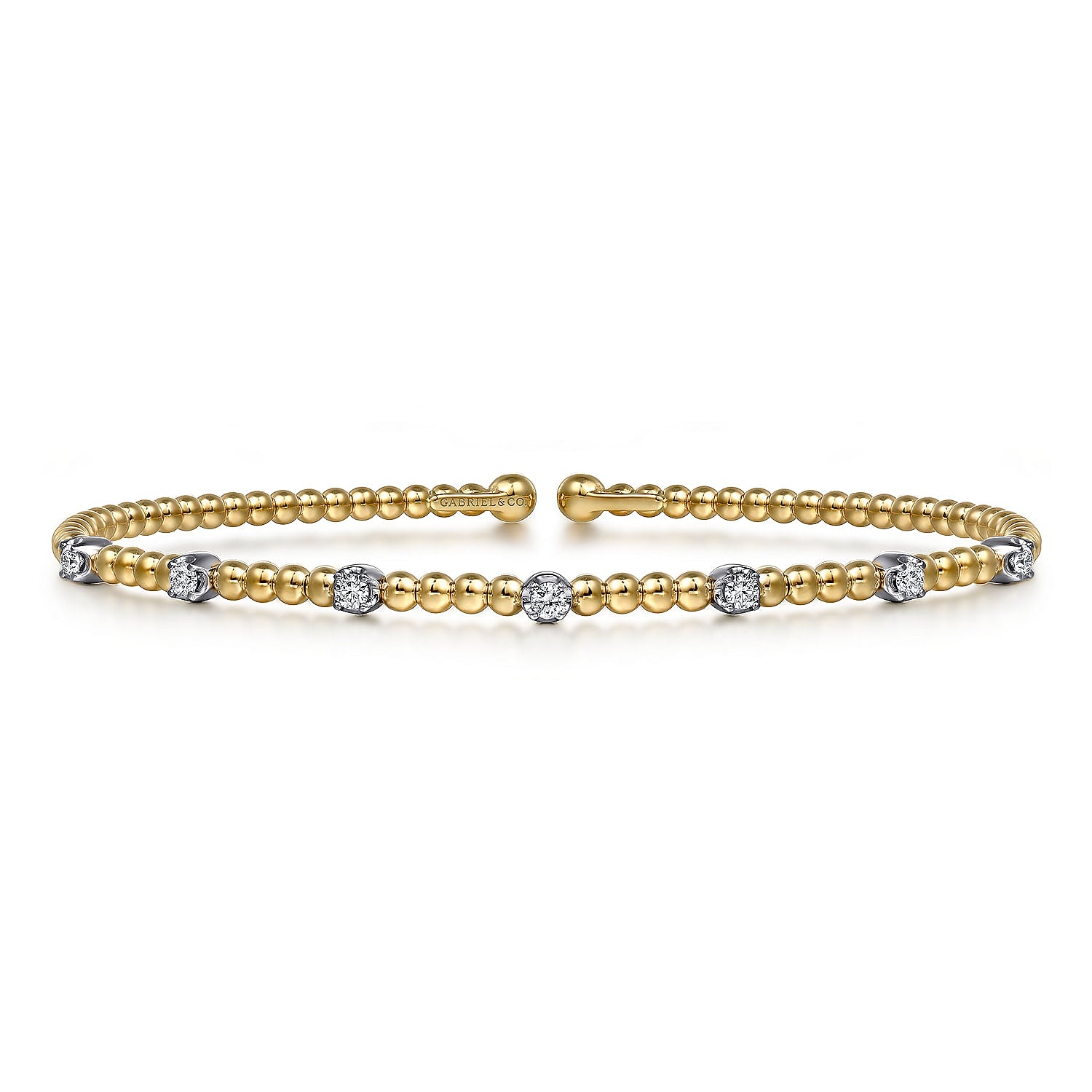 14K White-Yellow Gold .21cttw Diamond Stations Bujukan Bangle. 6.25 Inch. Designed by Gabriel & Co.