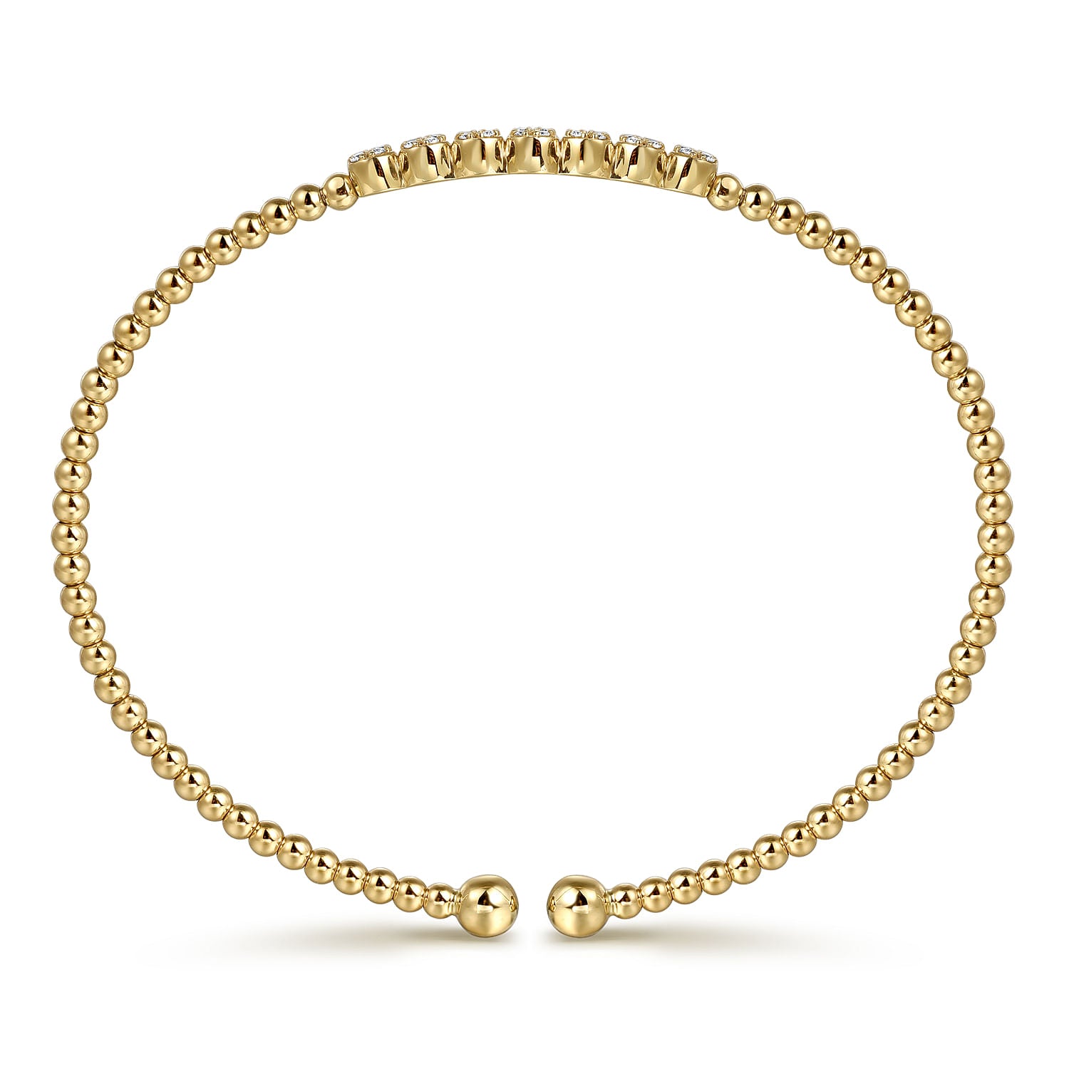 14K Yellow Gold .13cttw Diamond Bead and Cluster Bujukan Bangle. 6.25 Inch. Designed by Gabriel & Co.