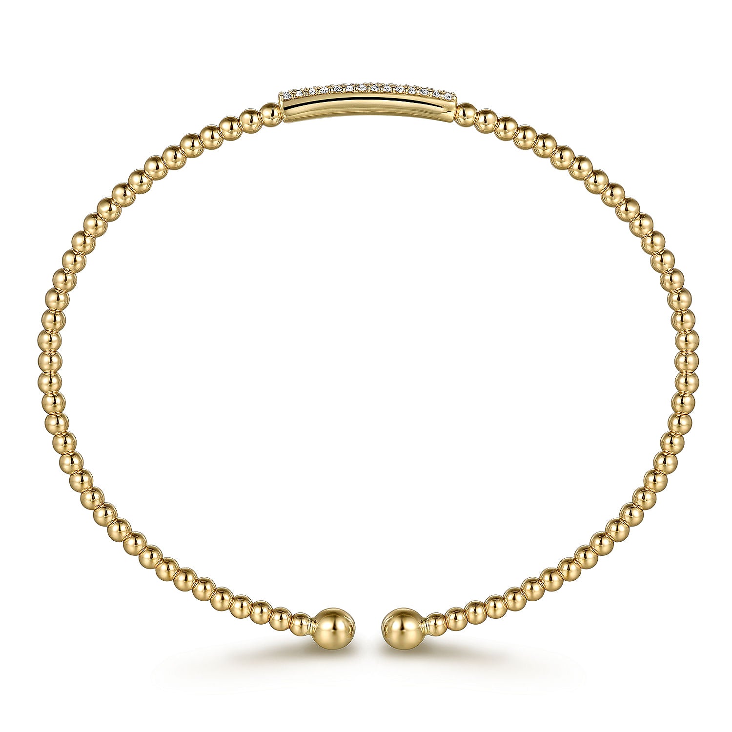 14K Yellow Gold .14cttw Diamond Bead Bujukan Bangle. 6.25 Inch. Designed by Gabriel & Co.