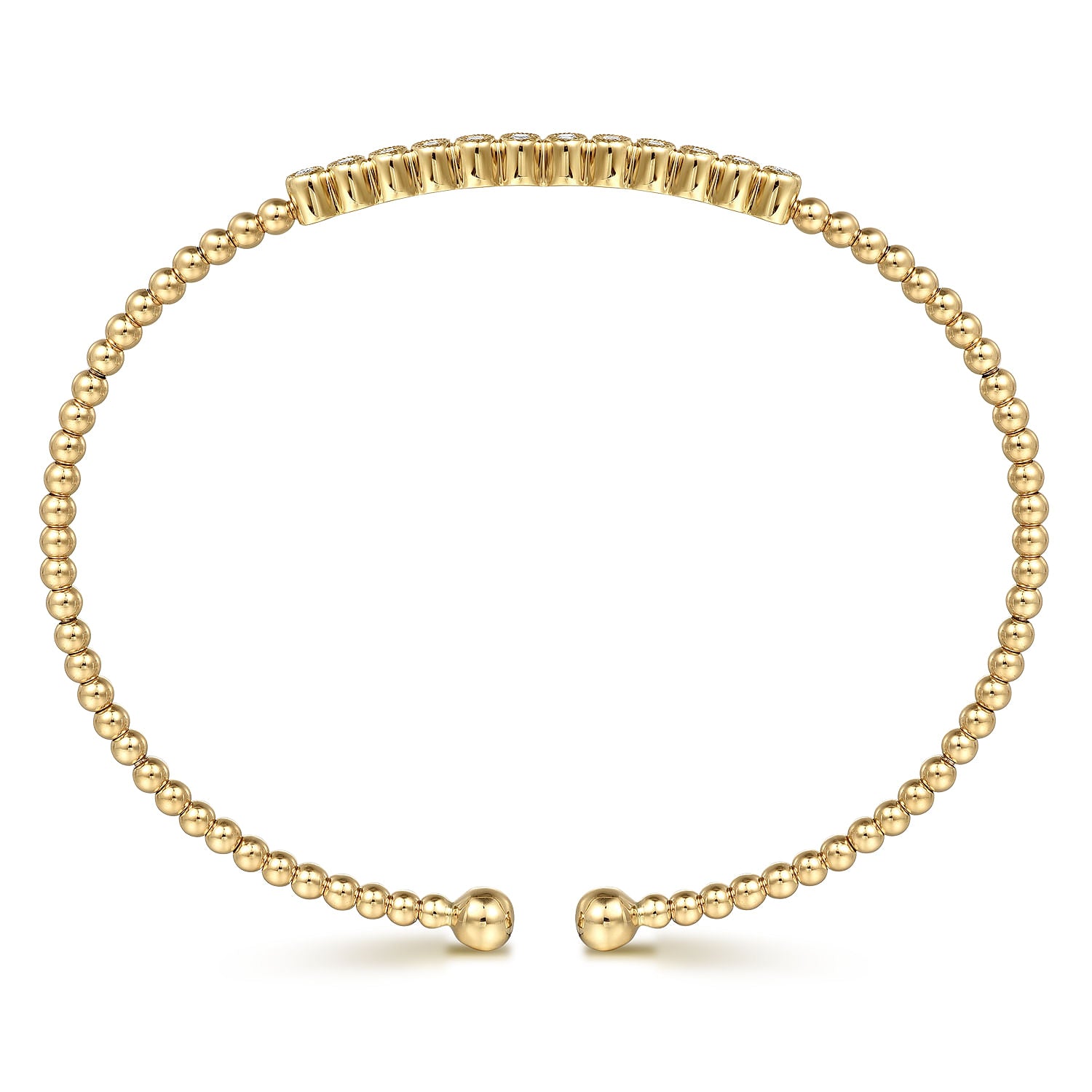 14K Yellow Gold .15cttw Diamond 6.25 Inch Bujukan Bead Bangle Bracelet. 6.25 Inch. Designed by Gabriel & Co.