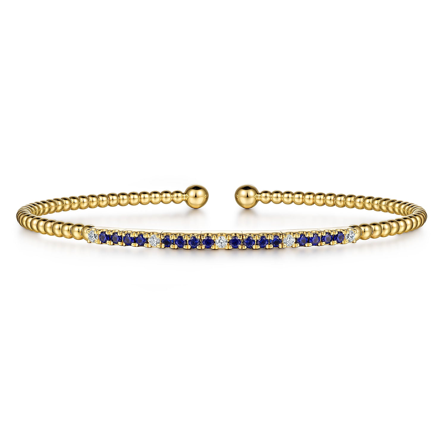 14K Yellow Gold .36cttw Sapphire & .09cttw Diamond Split Bujukan Bangle. 6.25 Inch. Designed by Gabriel & Co.