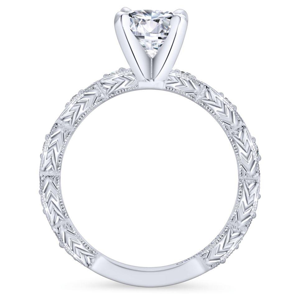 Engraved Solitaire Round Diamond Ring 14K White Gold 220A