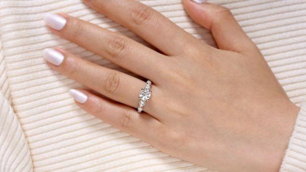 Ornate Bead Set Round Diamond Ring 14K White Gold 197A