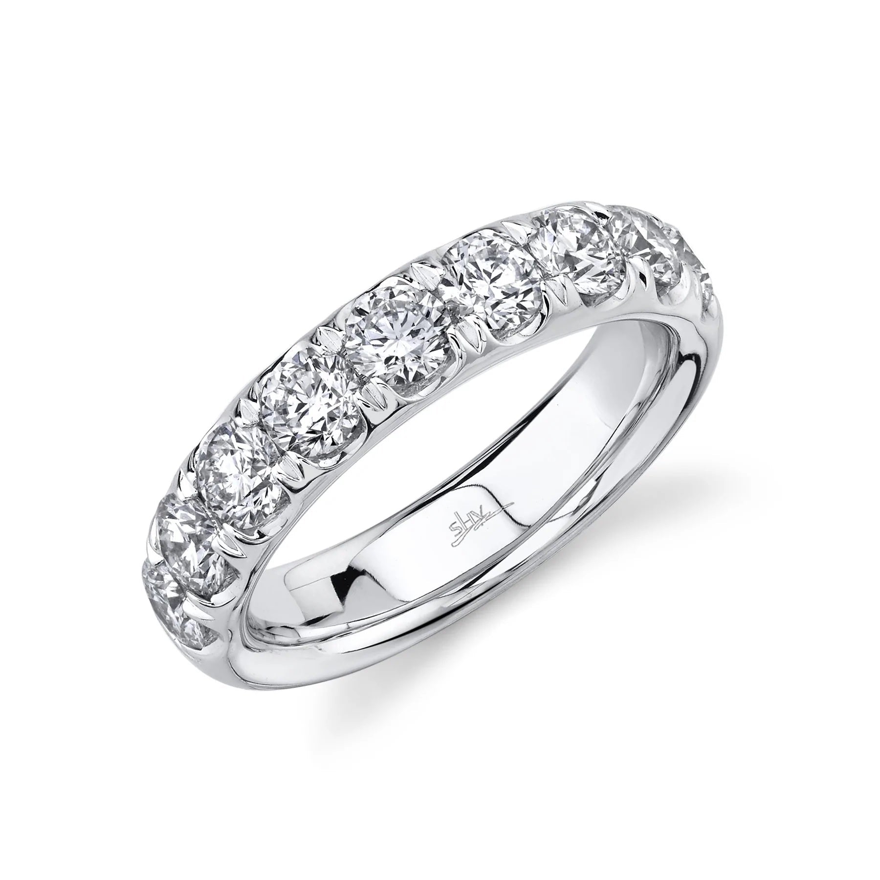 14K White Gold 1.90cttw 9 Stone Round Diamond Wedding Band. This conventional diamond ring or wedding band features 1.90cttw of quality G/SI round diamonds prong set in a traditional design. Finger Size 7.