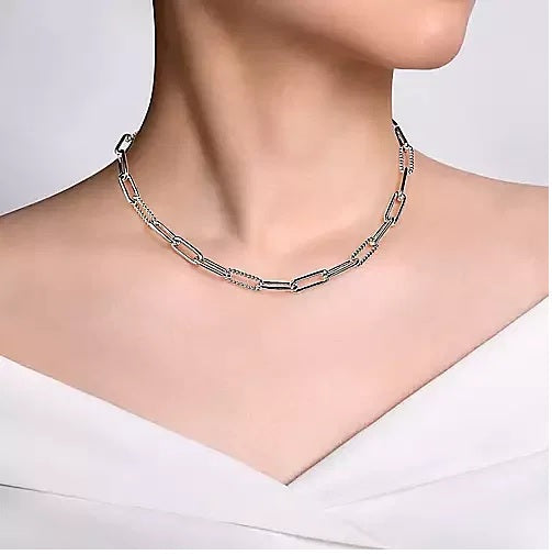 Sterling Silver 16 Inch Bujukan Paper Clip Chain Necklace. This sterling silver paperclip necklace measures 17 inches in length and features oval links made of sterling silver. Designed by Gabriel & Co.