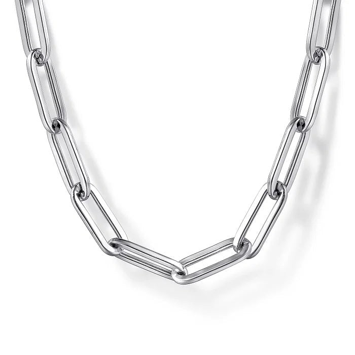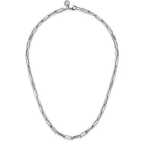 Sterling Silver Paper Clip Chain 18 Inch Necklace. This sterling silver paperclip necklace measures 18 inches in length and features oval links made of sterling silver. Designed by Gabriel & Co.