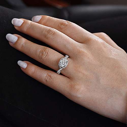DIAMOND ENGAGEMENT RINGS - 14K White Gold 1.85cttw Cushion Shaped Halo With Crossover Shank Round Diamond Engagement Ring