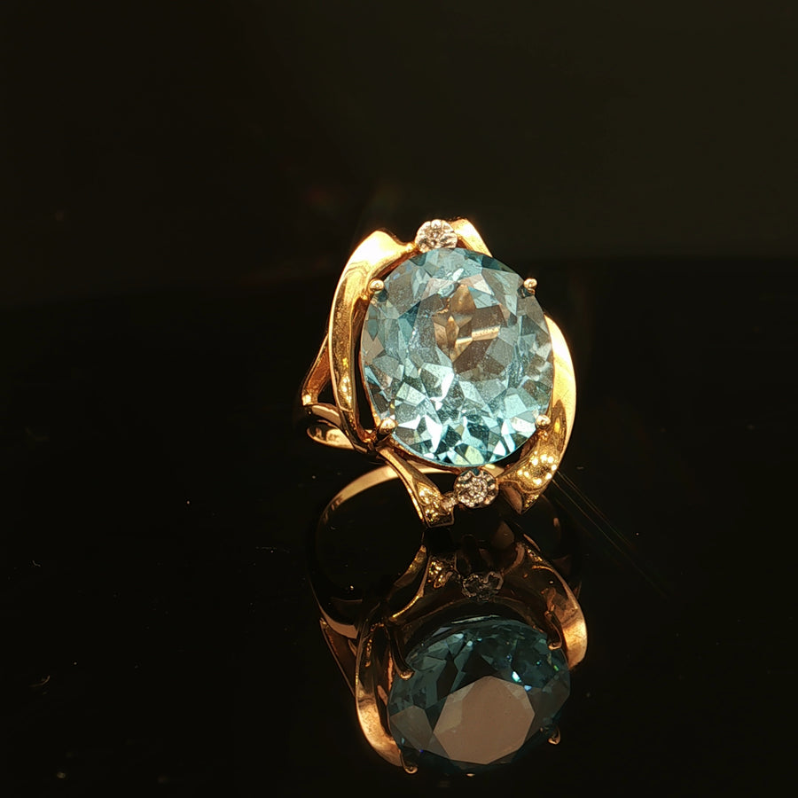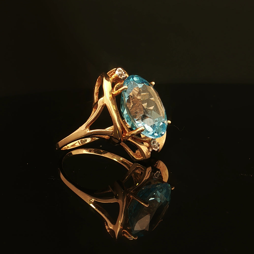 Estate 14K Yellow Gold Blue Topaz & Diamond Fashion Ring