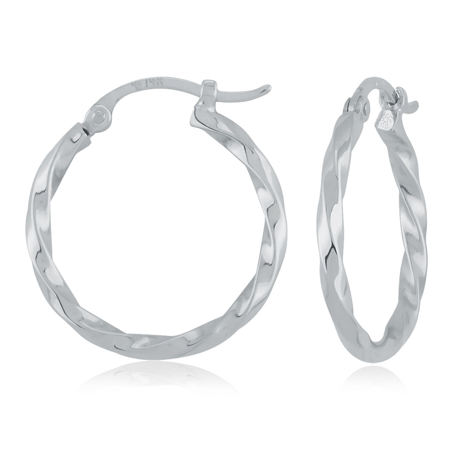 Medium Twisted Hoop Earrings 14K White Gold 3x17mm