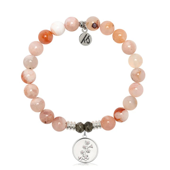 Sakura Agate Gemstone Bracelet with Cherry Blossom Sterling Silver Charm