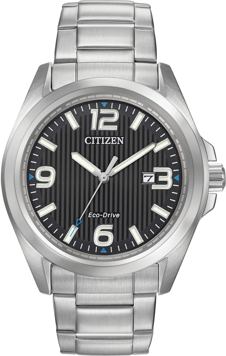 Citizen Eco-Drive Men's Garrison Silver-Tone Black Dial Stainless Steel Watch
