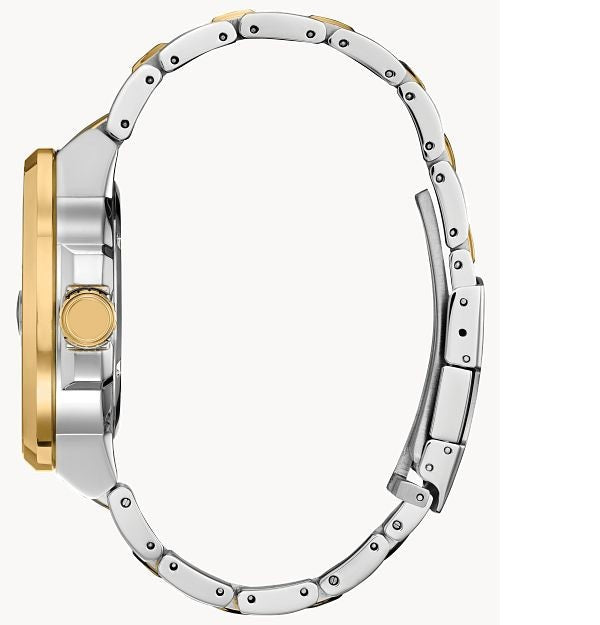 Citizen Eco-Drive Men's Endeavor Gold & Silver-Tone Stainless Steel Watch. This Eco-Drive watch is powered by light, and features a 44mm gold & silver-tone stainless steel case and bracelet. Blue dial, luminous 3 Hand, including date and dual time with sapphire crystal. Citizen’s Eco-Drive technology, so it is sustainably powered by any light and will never need a battery.