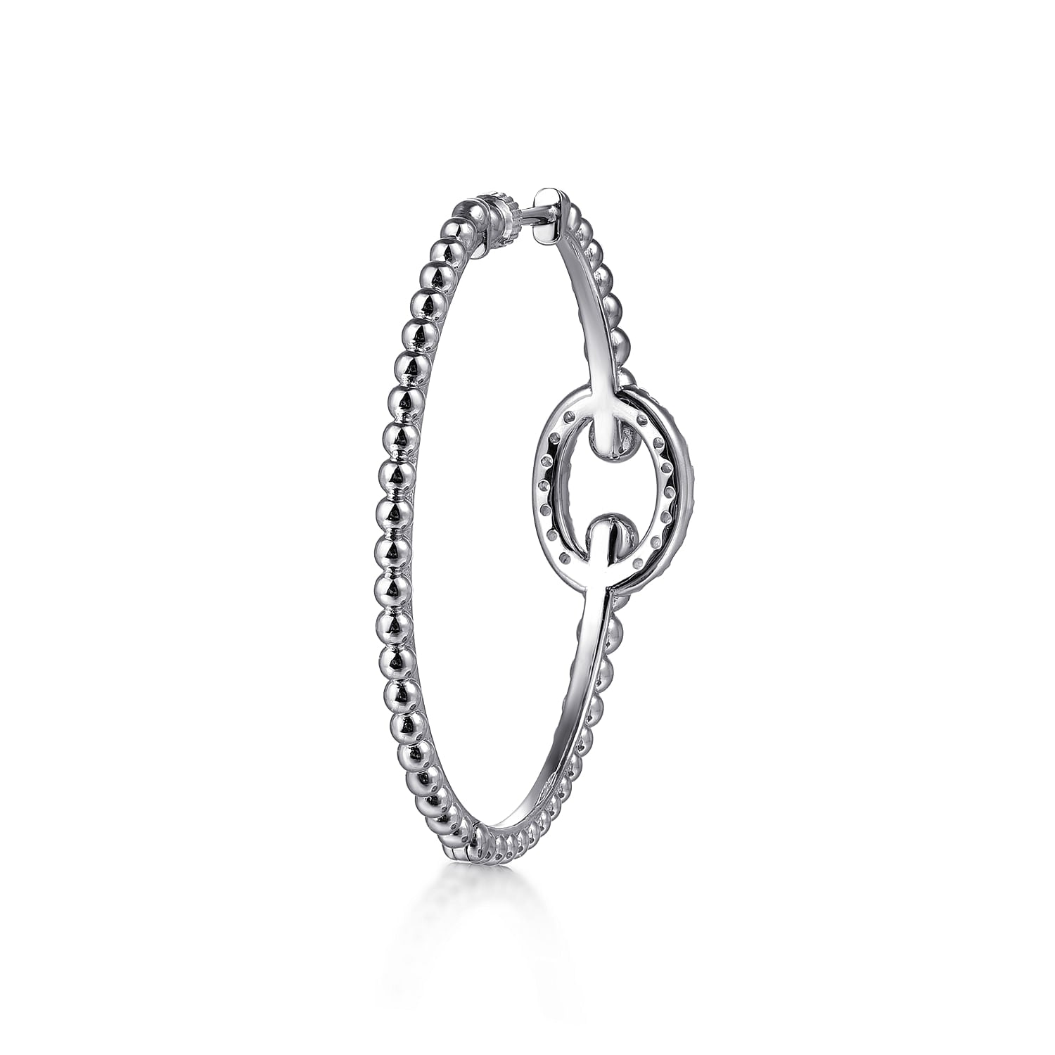 Sterling Silver 40mm White Sapphire Bujukan Hoop Earrings. Features .74cttw of round white sapphires. Designed by Gabriel & Co.