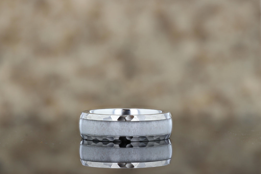 Cobalt Chrome Hammered Domed Wedding Ring with Genuine Elk Antler Inlay