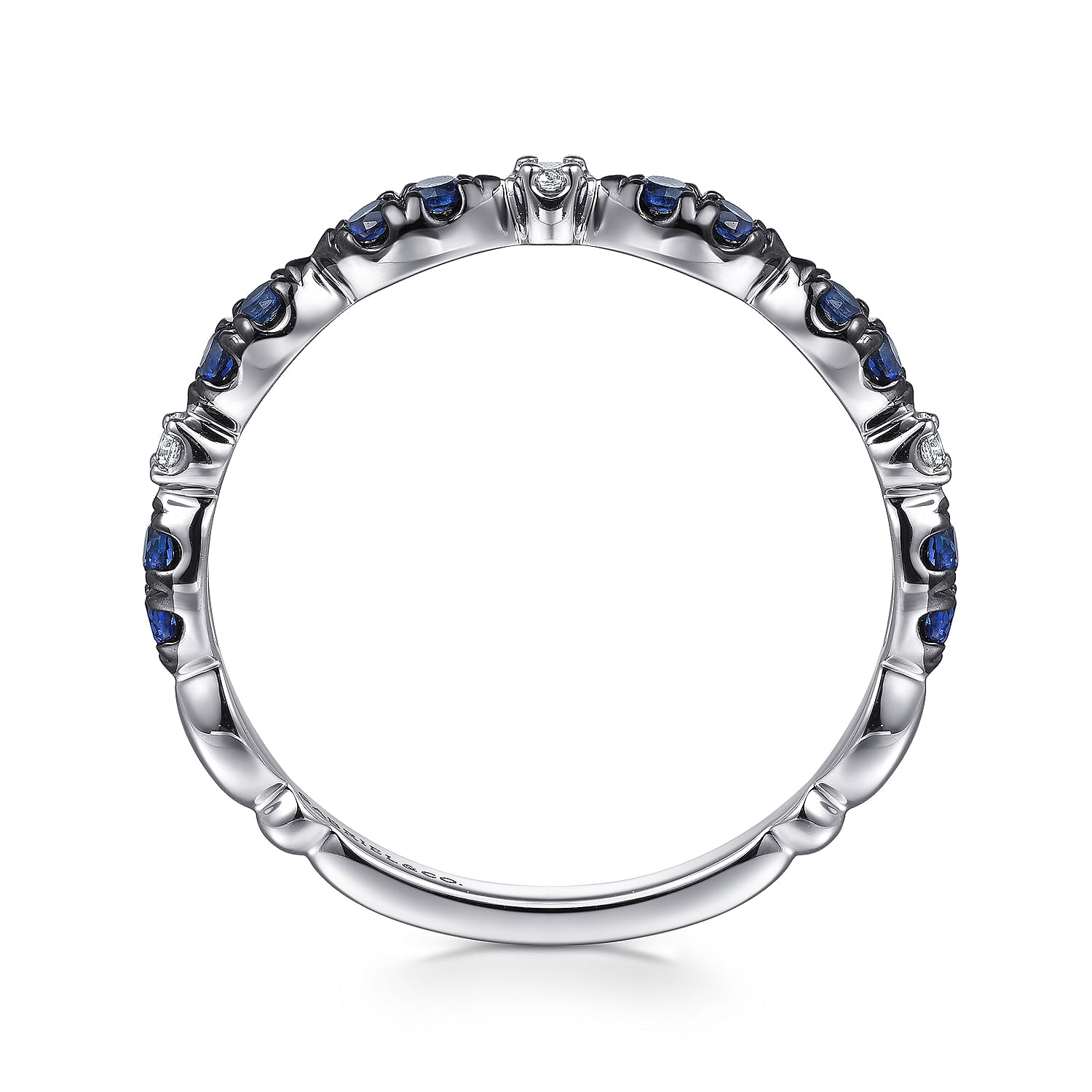 14K White Gold .24cttw Sapphire & .03cttw Diamond Stackable Ring with butter cup setting & black rhodium. Designed by Gabriel & Co.