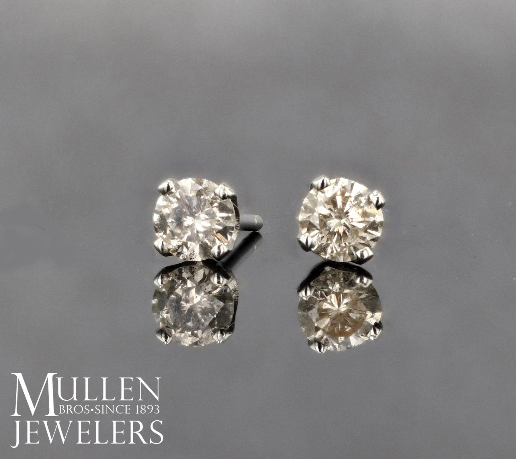 14K White Gold .25cttw Promotional Quality Round Diamond Stud Earrings. These simple 4-prong round diamond stud earrings total .25cttw of diamonds and are J color and SI3 clarity with great sparkle. A great bang for the buck.