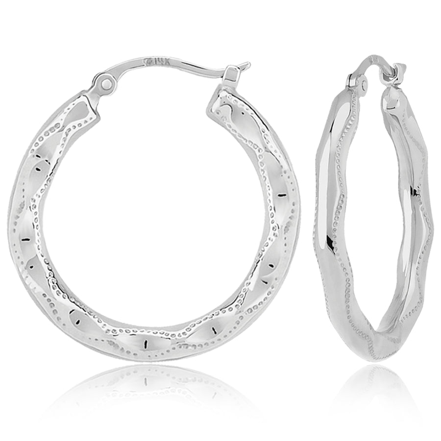 Medium Twisted Hoop Earrings 14K White Gold 3x17mm