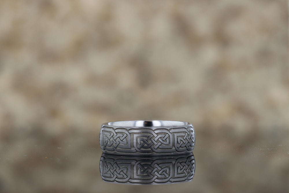Laser Carved Celtic Wedding Band Cobalt Chrome 8mm Wide