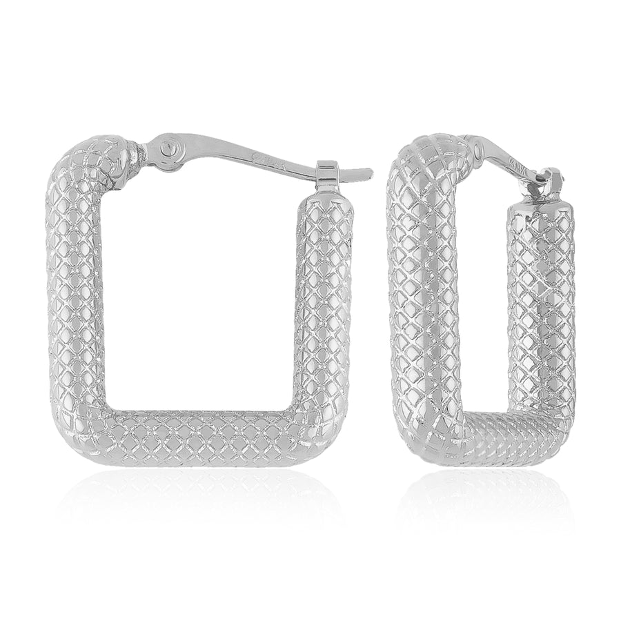Sterling Silver Small Rounded Rectangle J Hoop Earrings