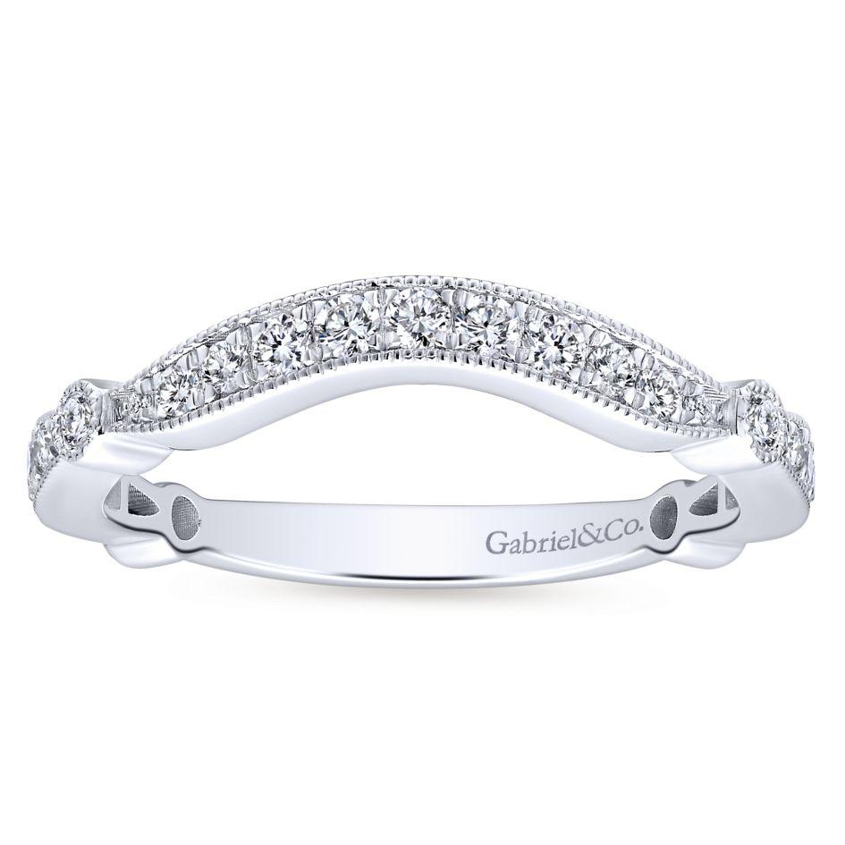 14K White Gold .34cttw Bead Set Curved Wedding Band with Milgrain Detail. Designed by Gabriel & Co. #401B
