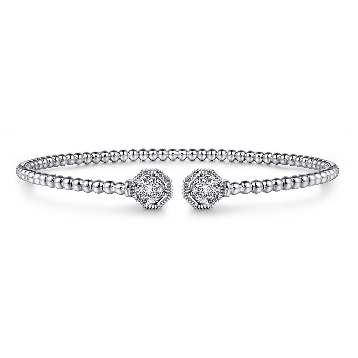 14K White Gold .11cttw Diamond Hexagon 6.25" Split Bujukan Bangle. 6.25 Inch. Designed by Gabriel & Co.