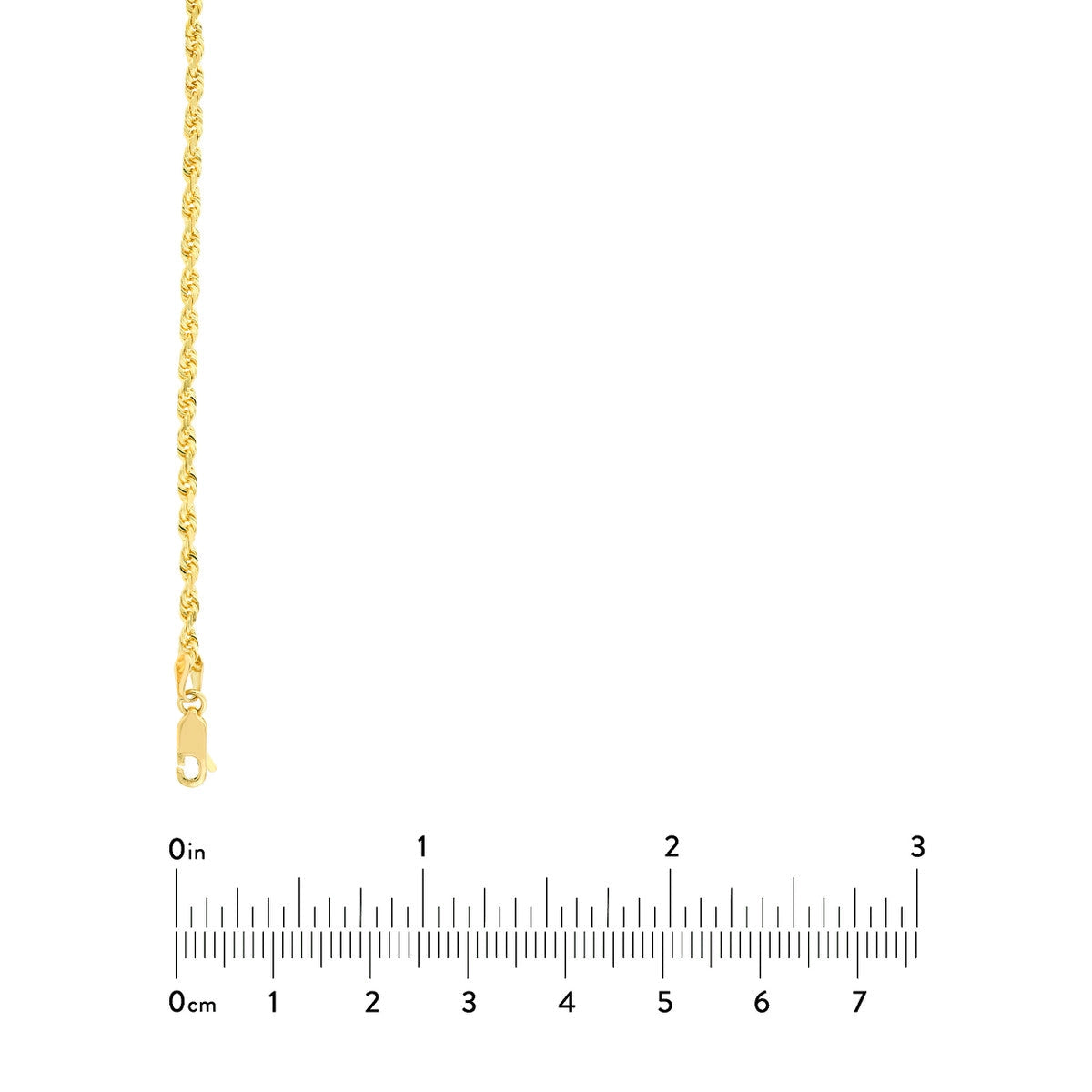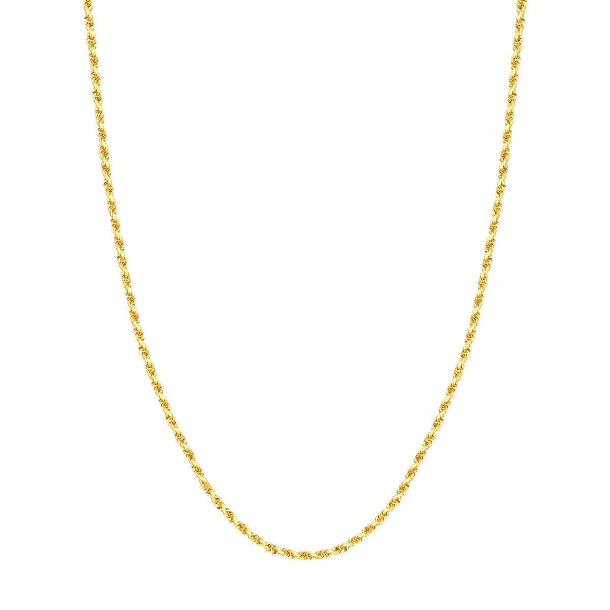 This classic diamond cut rope chain is made of solid 14k yellow gold and expertly crafted for years of durable wear, and diamond cut for incredible shine. This solid chain measures 2.7mm in width, and 24 inches in width. Weighing 11.05 grams, and finished with a lobster claw clasp.