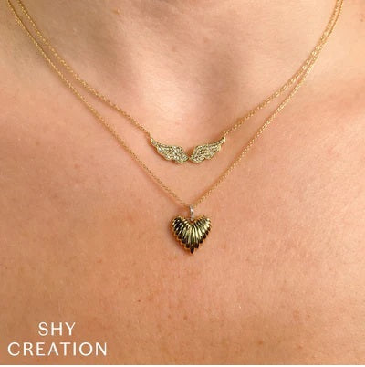 14K Yellow Gold Heart Pendant with .02cttw Diamond Accents on an 18" adjustable chain with lobster claw clasp.