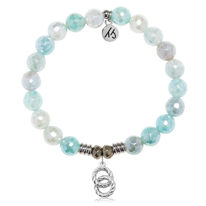 Aqua Agate Gemstone Bracelet with Forever Connected Sterling Silver Charm