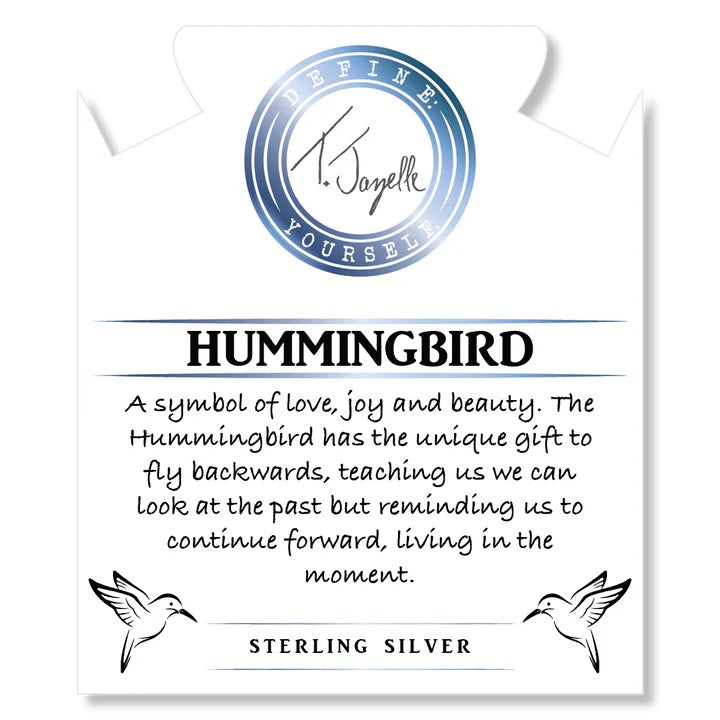 Aqua Fire Agate Gemstone Bracelet with Hummingbird Sterling Silver Charm